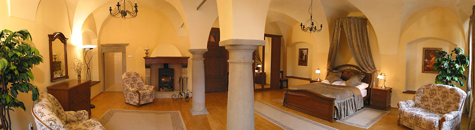 Penzión ponúka ubytovacie kapacity pre 25 osôb v 8 romantických dobových izbách. Izby sú dvojposteľové a šesť z nich je s možnosťou prístelok. Sú vybavené kúpeľňou, chladničkou s minibarom, televízorom, trezorom a Wifi. V piatich z nich sa nachádzajú krby na drevo.